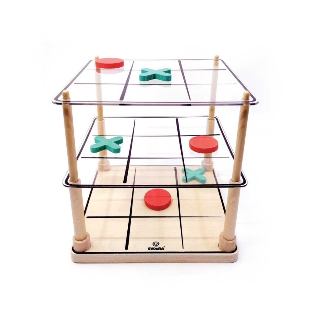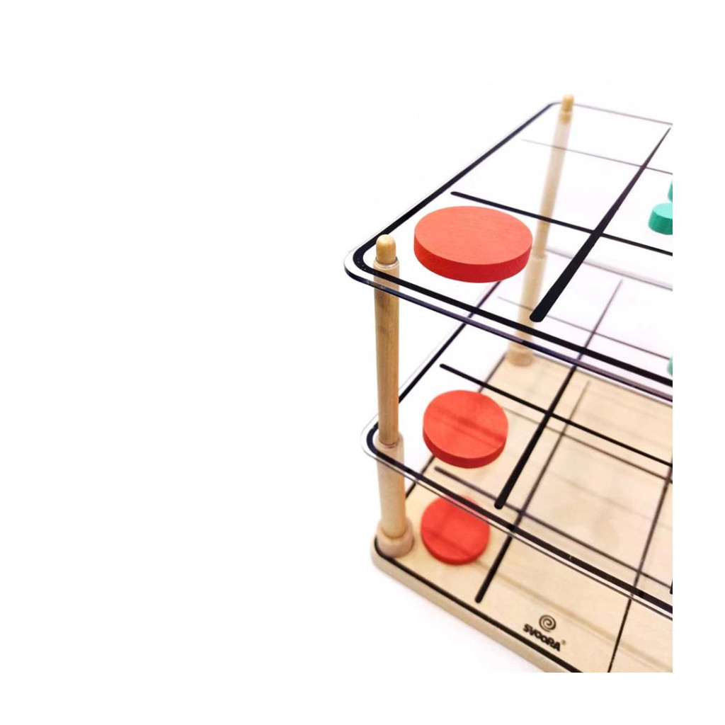 A klasszikus Amőba játék egy másik dimenzióba repít. Sőt, a 3 dimenzió epikus számába! Játszhatsz egy rétegben, mint régen, vagy egy másik szintre emelheted, és 3 rétegre bővítheted a kihívást!Helyezz el 3-at egy sorban, vízszintesen, függőlegesen és átlósan a rács mentén! Tartalma: 1 fa alap, 13 piros 'O' és 13 kék 'X' bábu, 2 akril tábla, 4 fa rúd, útmutatót 10 nyelven.