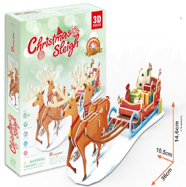 3D puzzle: Rénszarvas szánnal, ledes világítással