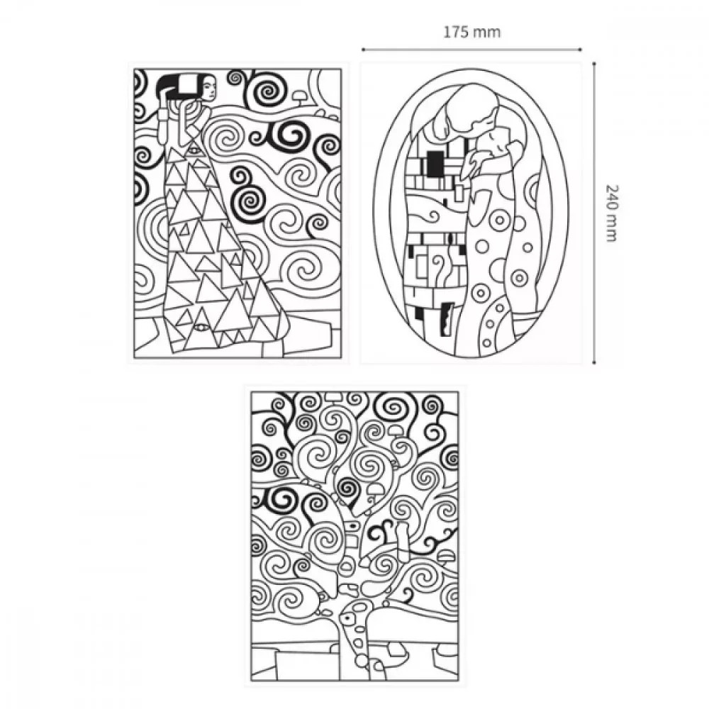3 db festőlap Klimt ihlette mintákkal, üvegmatrica festékek élénk színekben, Kontúrfesték a részletgazdag kidolgozáshoz, kreatív szabadság és művészi élmény minden korosztálynak!