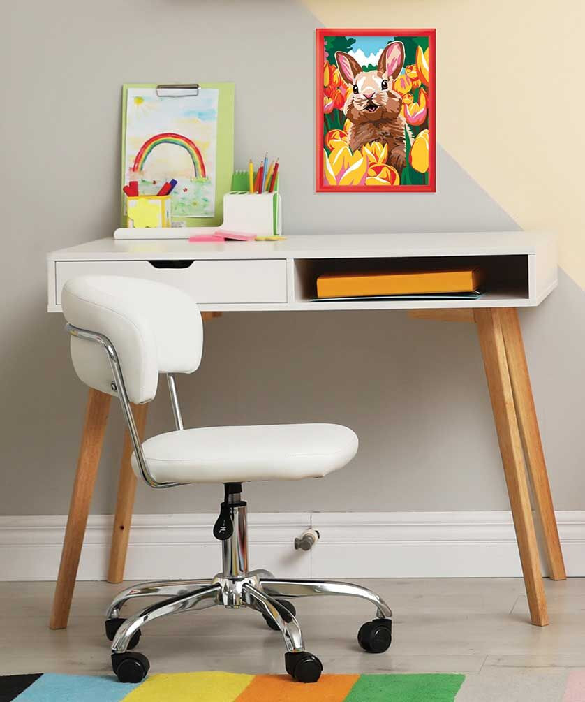 Zsófi egy napsütéses délutánon bontotta ki a HappiHobbi Paint & Frame készletét, amelynek középpontjában egy mosolygós kis nyuszi állt. A festőtábla már előre meg volt nyomtatva, minden részlet számokkal jelölve – mintha egy színes térkép vezetné őt egy tavaszi rétre.